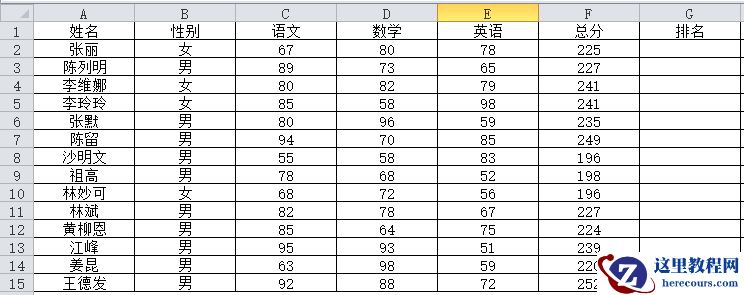 以学生成绩表为例,来认识RANK函数的使用方法。