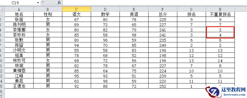 用这种方式进行排名,数据的排名名次就不会有重复啦!