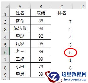 如下图的样子这就是中国式排名:并列第五,然后会出现第六名。