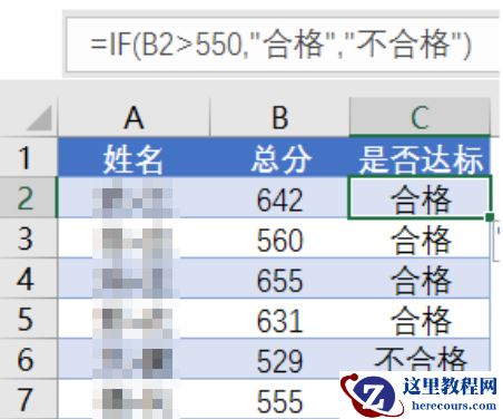 如下图,某班成绩需要判断,大于550分的合格,否则就是不合格。