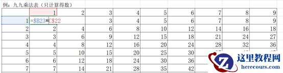 混合引用:行变列不变,或列变行不变,例如完成乘法表