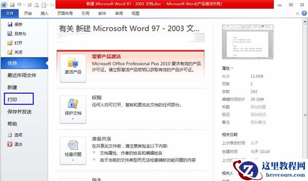 1、Word文档和Excel表格的打印有些差异,没有显示打印页码的选择项,打开需要打印的Word文档,点击“文件”(如图);