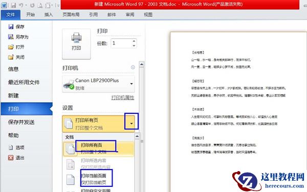 4、点开“打印所有页”旁边的下拉键,可选择打印所有页或是打印当前页(如图);