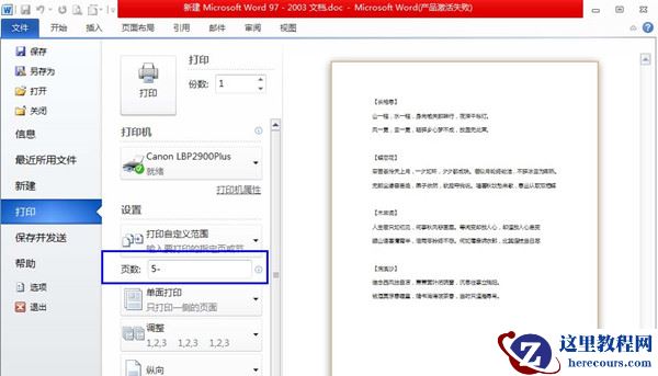 7、输入“5-”即打印第五页到最后一页(如图)。