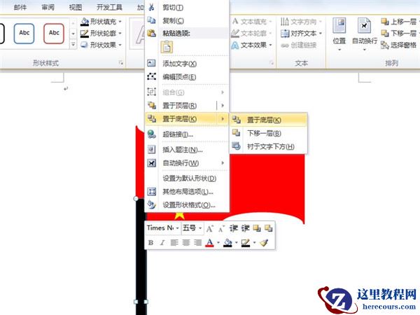 6、采用同样的方法插入一个长方形,修改该图形填充颜色和轮廓颜色为黑色,右键单击长方形,从下拉菜单中选择置于底层。