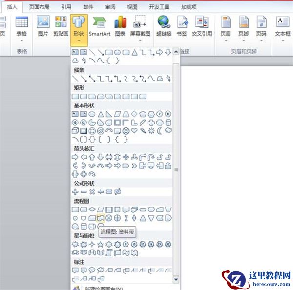 1、首先启动word文档,执行插入-图形命令,从下拉菜单中选择资料带。
