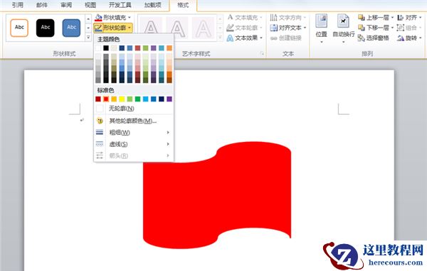 2、在文档中拖拽左键绘制一个图形,设置形状填充为红色,形状轮廓也为红色。