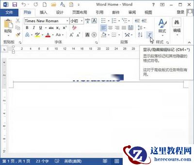 第3步,返回Word2013文档窗口,在“开始”功能区的“段落”分组中单击“显示/隐藏编辑标记”按钮,从而在显示和隐藏段落标记两种状态间进行切换,如图3所示。