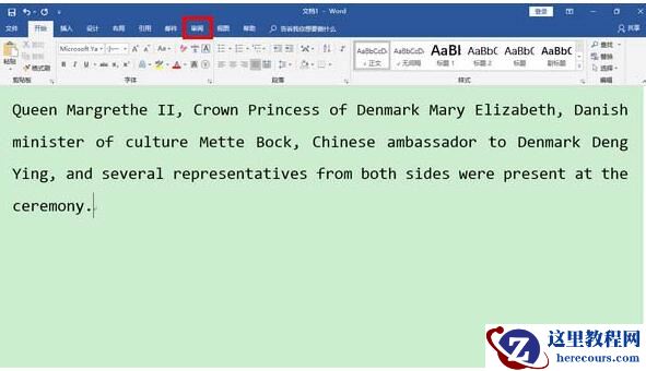 1、首先,在 Word 2019 中粘入要翻译的文本,再点击“审阅”菜单项。