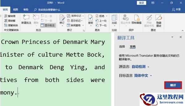 6、点击之后,Word 2019 将会自动创建一个新文档,该文档的内容就是翻译后的结果。