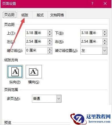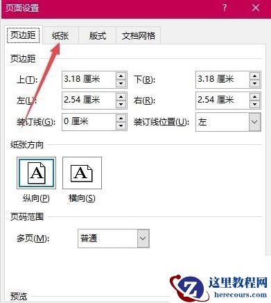 4、接着在页面设置窗口中点击“纸张”选项卡