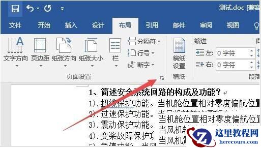 2、在打开的布局功能区点击“页面设置”按钮