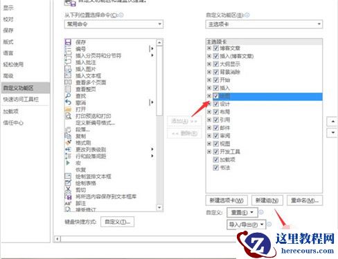 1、在word详细的参数设置里,我们先找到自定义功能区并点击它。