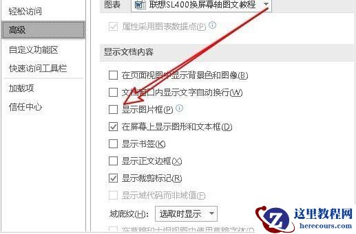 5、接着在右侧的窗口中我们找到并勾选“显示图片框”设置项。