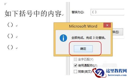 点击全部替换,看看效果,怎么样,是否括号里面的内容都消失了。