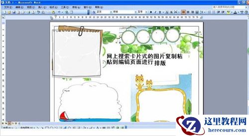 3、在网上搜索一些卡片样式和图片,然后复制粘贴到小报界面那里,也可以自己编辑好图片插入到word那里进行排版布局。