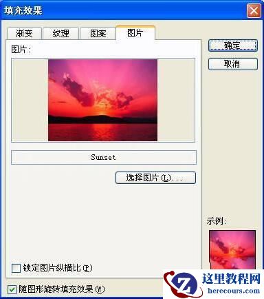 5、切换到“图片”标签下,通过其中的“选择图片”按钮,选中前面准备好的图片,确定返回。