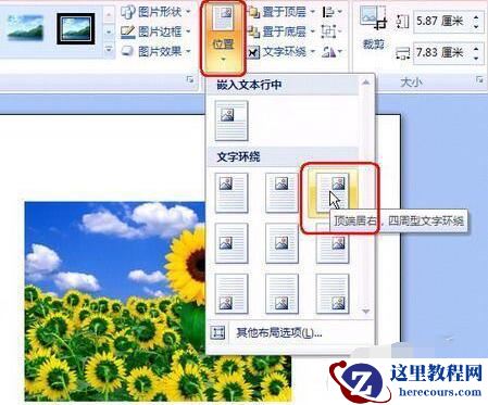 3、可选对齐方式更多:单击“排列”控件组中的“位置”,可以进行上中下、左中右几种对齐方式的选择,如图5。
