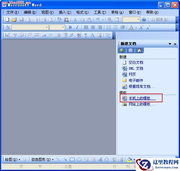 第四步:选择右边任务窗格中的“本机上的模板..”如下图所示: