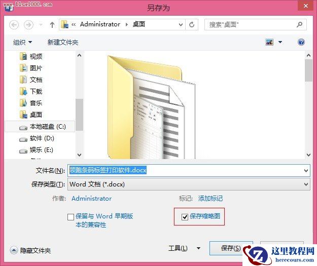第三步:在弹出的文件保存对话框中,填写文档名字,并勾选“保存缩略图”选项。