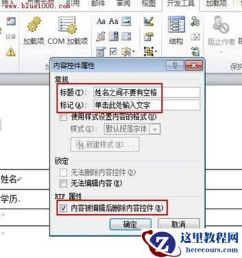 word2010中使用内容控件对输入位置进行提示