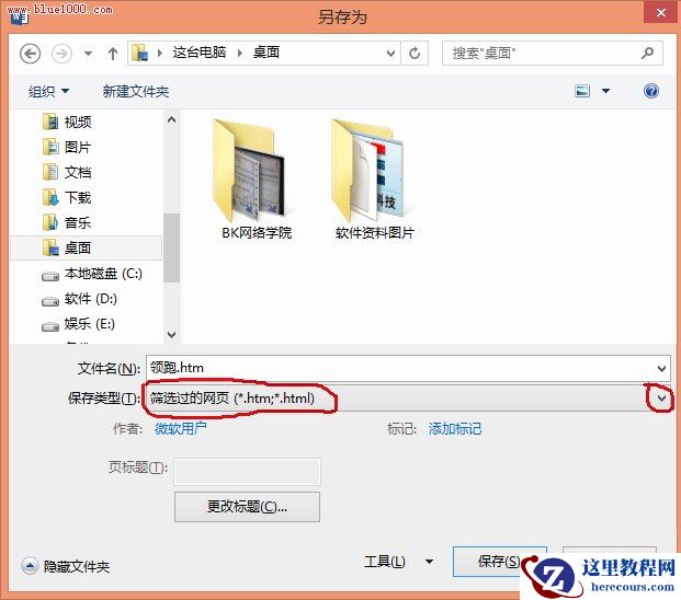 ②弹出另存为对话框,我们将保存类型选为网页,输入保存文件名称,选好保存路径,单击保存按钮。