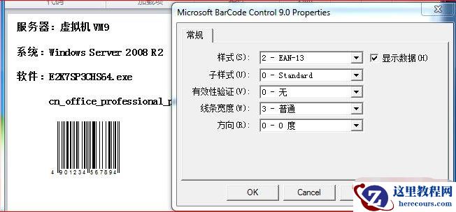 条形码样式可以在:右键—Microsoft BarCode Control 9.0对象—Properties