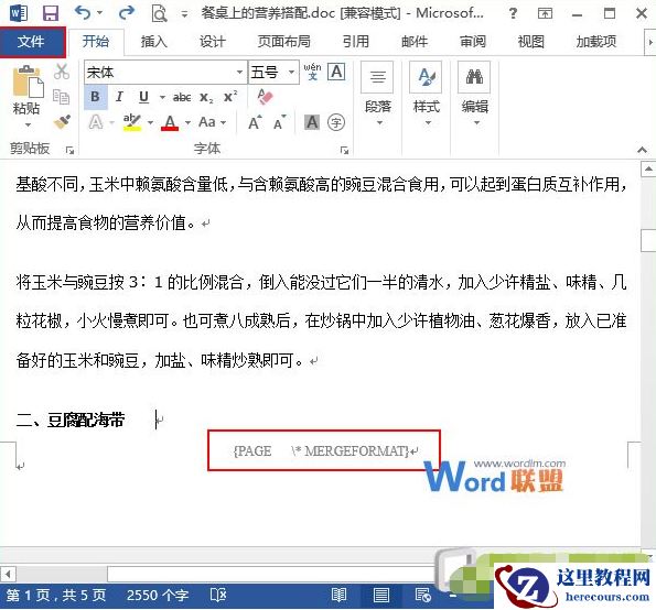 4、返回到文档中,我们就能看到页码是正常显示的了。