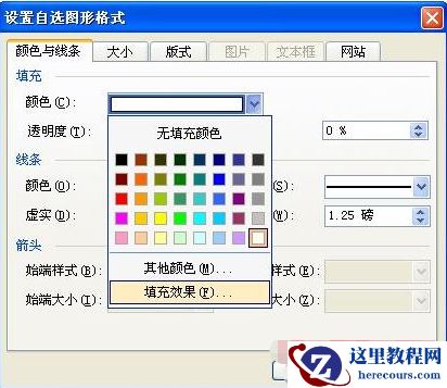 3、选择“颜色与线条”,在“颜色”里面选择“填充效果”中的“图片”进行插入。