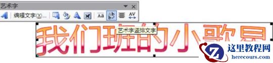 2、插入艺术字后,双击艺术字打开“艺术字”的工具栏对其进一步设置,如形状,颜色,大小等。