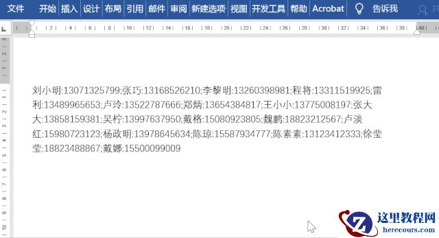 选中文本内容,点击插入——表格——文本转换为表格,在打开的对话框,将分隔符号设置为其他,并输入符号,比如这里输入的是分号,然后点击表格——布局——数据——表格转换为文本。