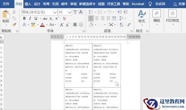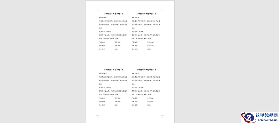 如图所示,如何把四张相同的内容排版到同一个文档上?本期Word小编与大家分享几个不错的小技巧。