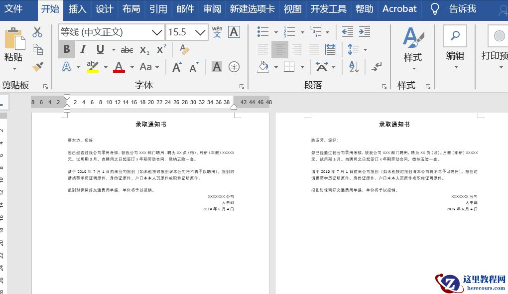 由于大部分内容是一致的,所以借用邮件合并来完成。