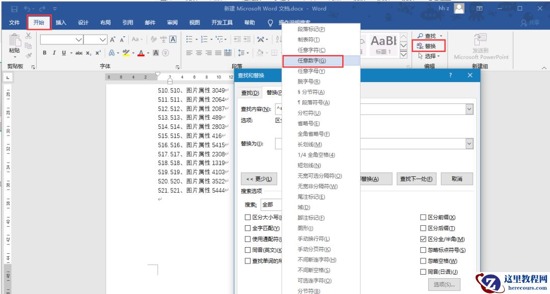 同样,将”查找内容“中插入两次”特殊格式“中的”任意数字“,然后再输入一个中文顿号,点击全部替换,可删除两所有三位手工编号与顿号的删除。同理可删除所有一位手工编号与顿号的删除。如果你的手工编号有上千的,那么要首先四次插入”特殊格式“中的”任意数字“进行替换,再三次、再两次、再一次。