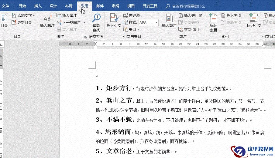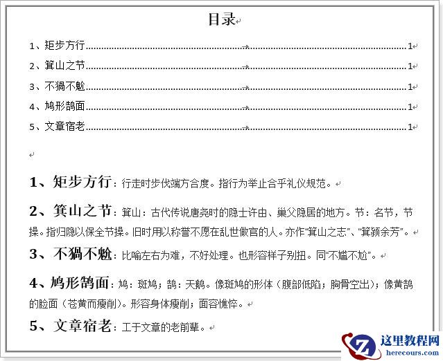 如下一段成语解释的文字,如何只选取每一段前面的序号与成语做成标题样式,从而自动生成目录?