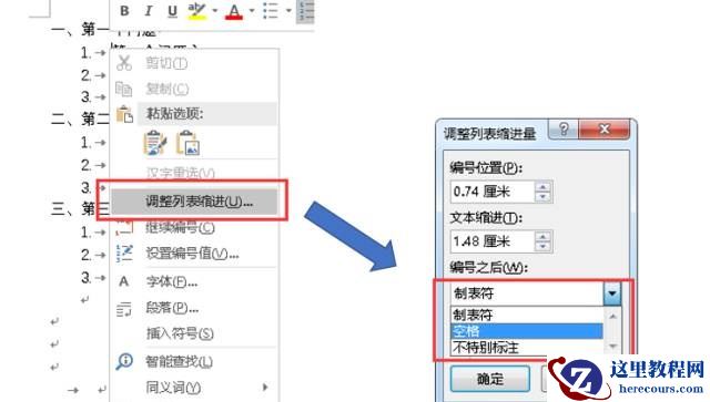 第二种方法是把制表符换成空格,右键,选择调整列表缩进