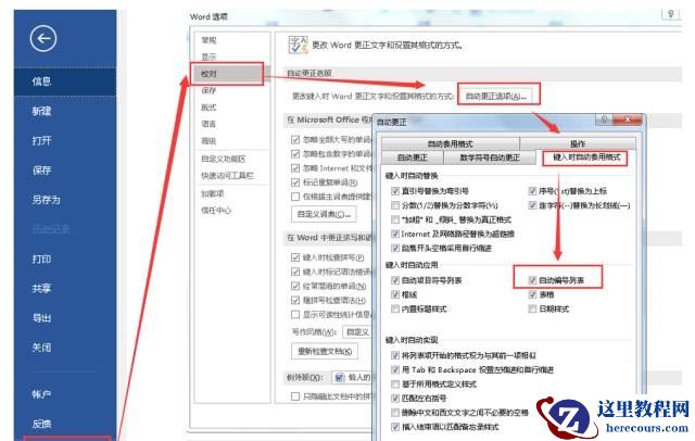 而:如果想彻底解决WORD一开始输入,编号变自动的问题,需要在“开始——选项——校对——自动更正选项”内,“自动编号列表”的钩对掉,如下图: