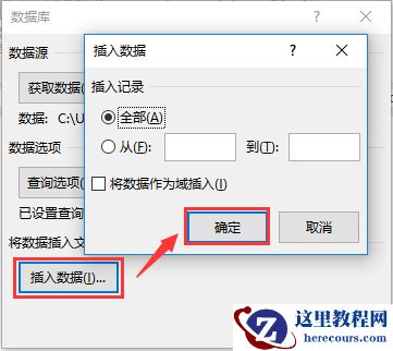 (6)返回“数据库”对话框,单击“插入数据”按钮,打开“插入数据”对话框,直接单击“确定”按钮。