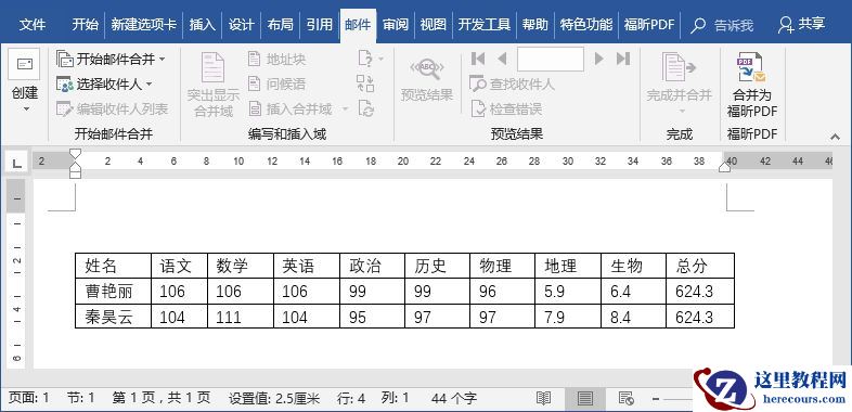 (7)返回Word工作界面,即可查看到筛选后的数据效果。