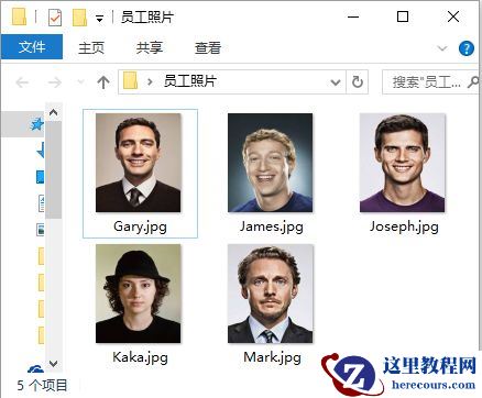 (1)准备好员工照片,并处理成相同大小,并以员工姓名命名照片,然后将这些文件放于一个文件夹中。