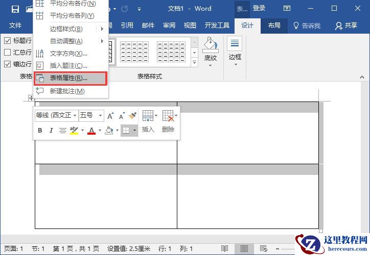 (2)拖动表格调整其大小后,选中整个表格,右键选择“表格属性”命令。