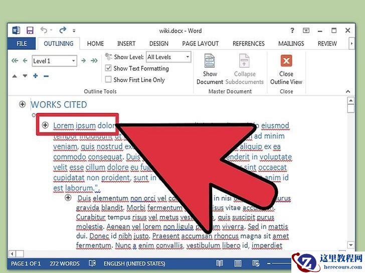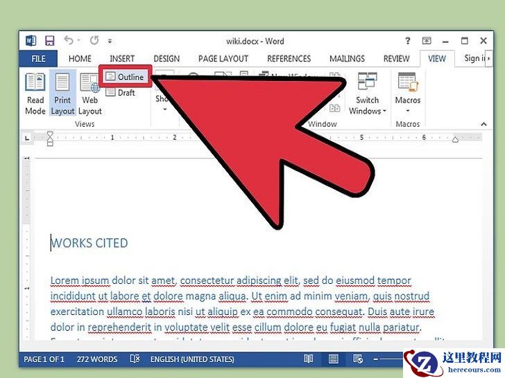 点击“查看” → “大纲”。“查看”标签位于屏幕顶部。点击它后,空白文档上方将显示标有“文档视图”的选项卡。点击标有“大纲”的那个。这样将打开大纲编辑视图。这个视图看起来应该像一个巨大的空白屏幕,上面有标签。