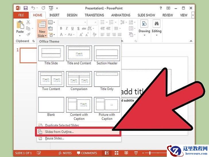 将幻灯片从Word添加到现有PowerPoint。如果只想添加Word文档中的几张幻灯片,则可以让PowerPoint基于Word创建新幻灯片。为此,请找到到要插入幻灯片的点。点击“创建新幻灯片”下方的小向下箭头按钮,然后选择“从大纲创建幻灯片”。要将幻灯片放在正确的位置,需要在“创建新幻灯片”之前点击要放置在Word文档前面的幻灯片。Powerpoint将按顺序自动创建文档中的每张幻灯片,而不仅仅是第一张幻灯片。