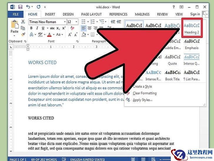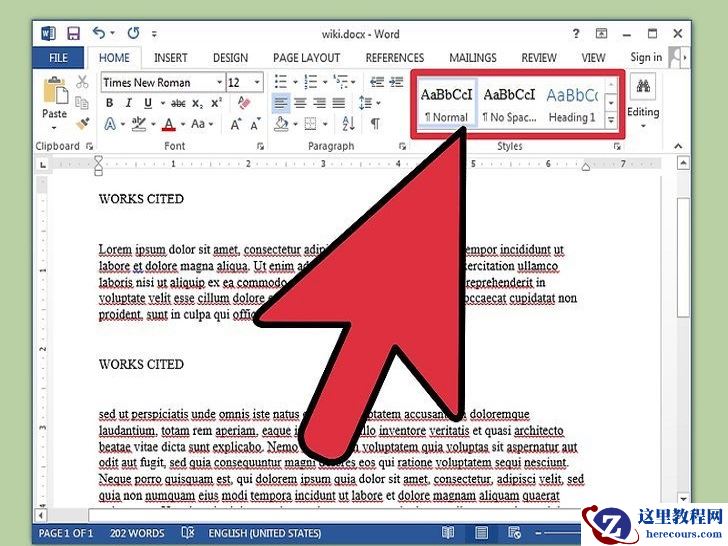 跳转到“样式”菜单。点击Word左上角的“主页”选项卡。除了屏幕顶部的工具栏,你还会看到一个标有“样式”的大框。其中有好几种样式,比如名为“正常”、“无间距”、“标题1”等。