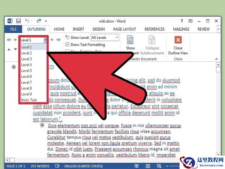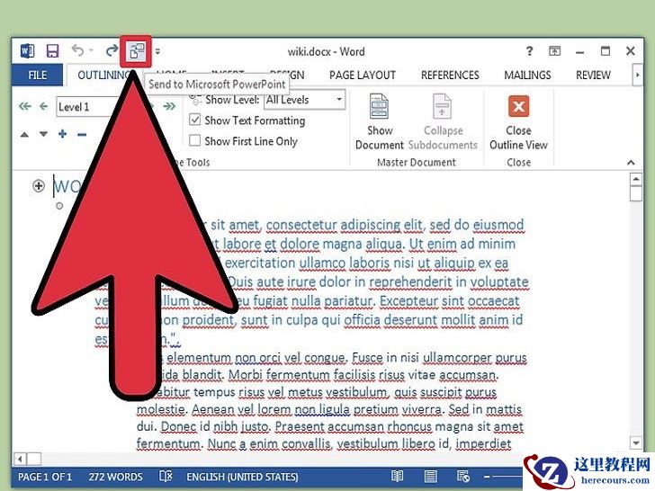 转换前检查你的工作。点击Word顶部的“查看”选项卡,然后从左上角选择“大纲视图”。这不会改变你的文档,但它会按顺序显示。可以使用屏幕顶部的绿色箭头更改每个“级别”,对应于不同部分的PowerPoint:1级 = 幻灯片标题2级 = 幻灯片文字3级 和以上 = 子项目符号正文文本 不会出现在PowerPoint中。