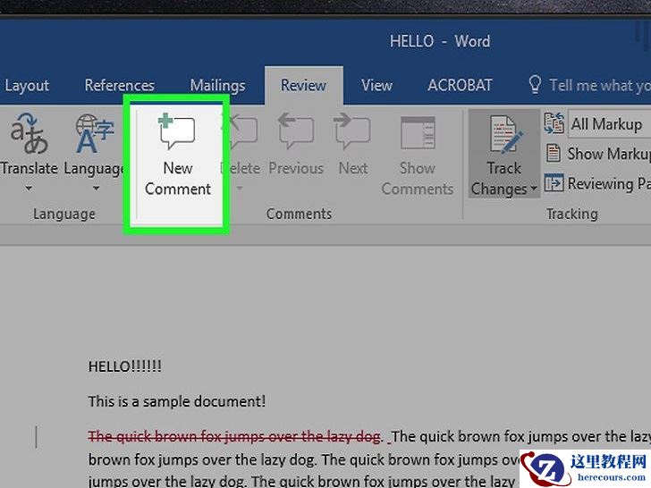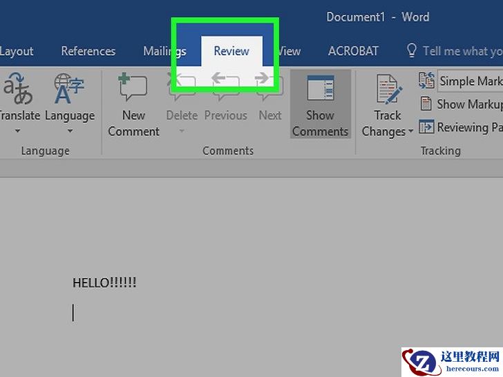 点击审阅选项卡。它位于文档页面顶部的蓝色部分里。点击它,打开新的选项组来编辑文档。