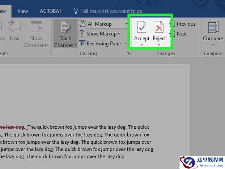 完成后,接受或拒绝编辑。点击接受或拒绝来修改高亮的编辑,或者点击接受或拒绝下方的▼,点击所有更改,来接受或拒绝每个编辑。这样做会删除修订格式(如:红色的文本和批注框)。你也可以跳过这一步,保存所有修订更改。