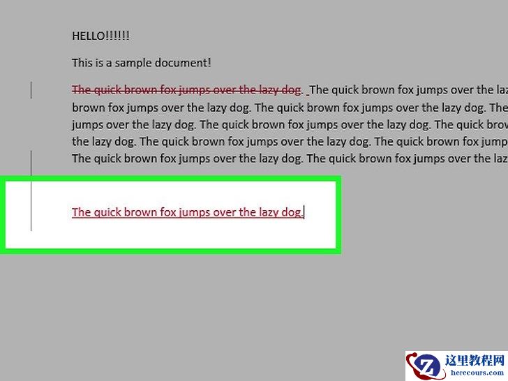 删除文档中的文本。删除文档内容(从单个空格到整个文档)会让文档内容消失不见。你会看到屏幕右侧出现一个红色方框,写着“[名字] 删除了: [文本]”,这里的“文本”就是你删除的文本内容。如果你更改文档全部的格式(如:更改文字的字体),那么重设格式的详细细节也会显示在屏幕一旁。