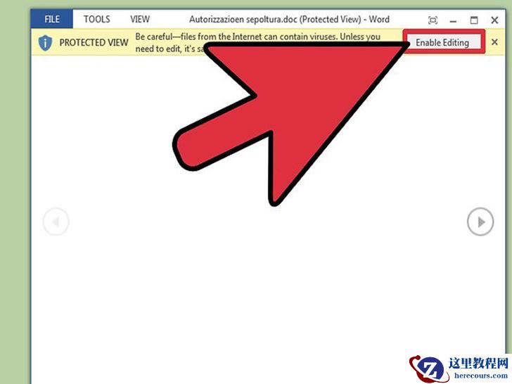 启用编辑。如果文件是从网上下载的,会通知没有启用编辑功能。这是Word采取的安全措施,以防止电脑感染病毒。如果你信任该来源,点击窗口左上方的“文件”,然后点击黄色框里的“允许编辑”。