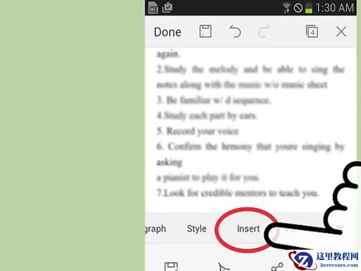 点击“插入”。将会显示一个用于设置“文档”格式的简化菜单,使用起来甚至比桌面应用程序更简单。